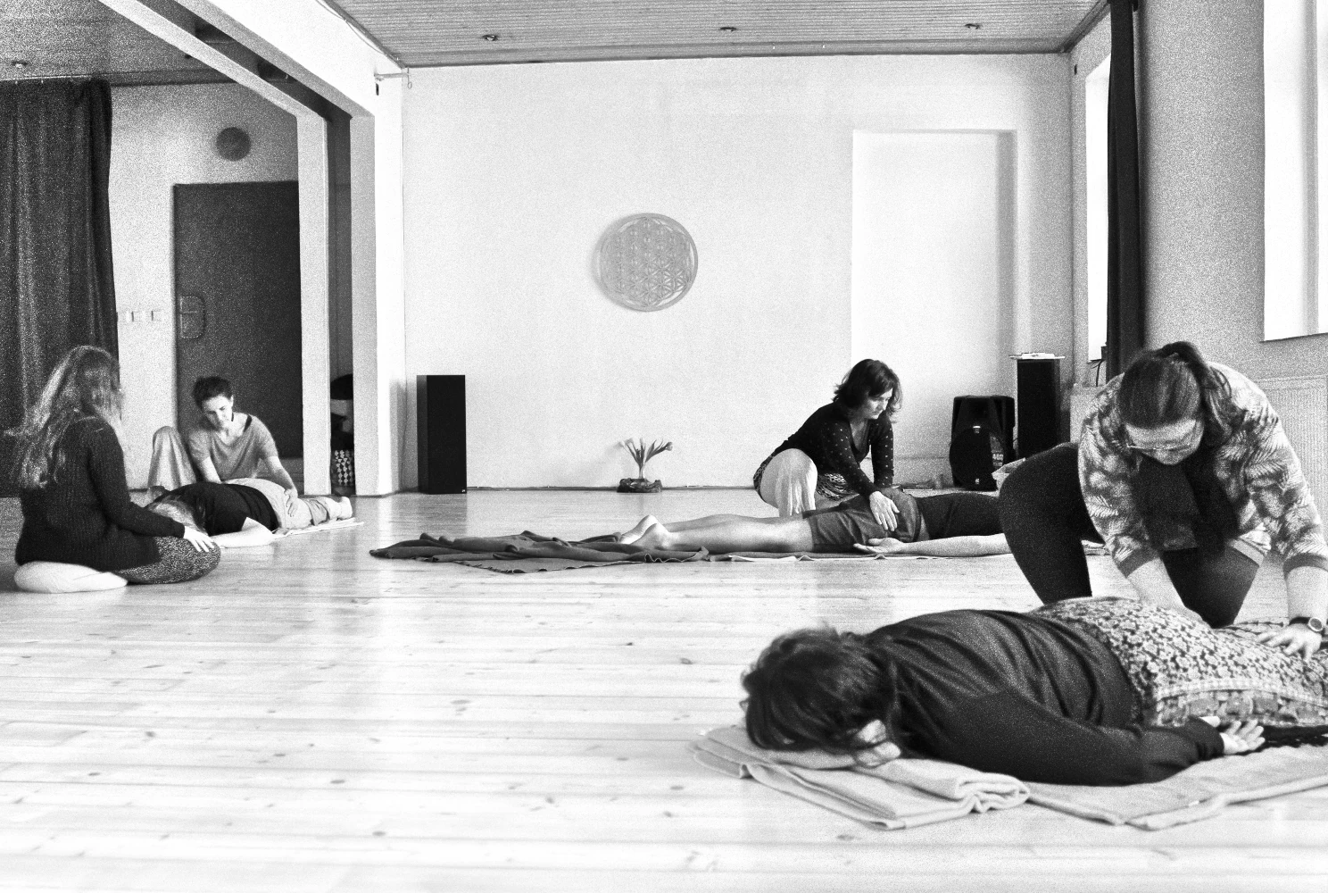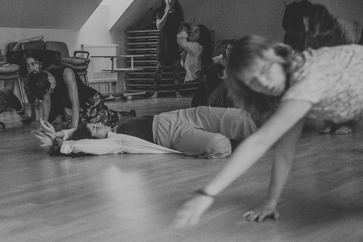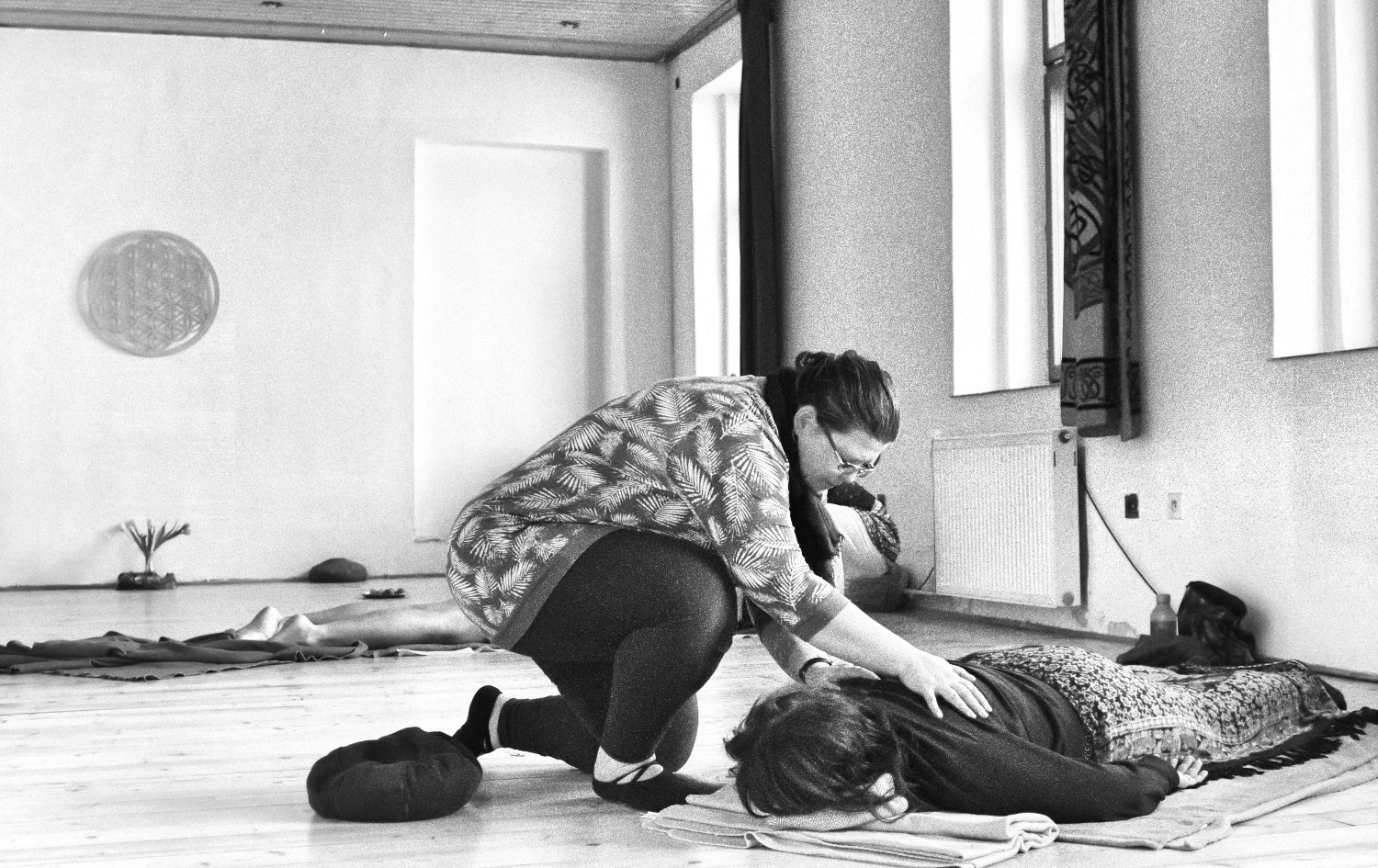 Při zkoumání jemnocitu se budeme opírat o poznatky z Body Mind Centeringu, Polyvagální praxe, Laban/Bartenieff a práce s dechem. Do každého cvičení můžeš vstoupit a nemusíš, vše v citlivosti k vlastním potřebám a hranicím. Budeme zkoumat sólo, někdy ve dvojicích, malých skupinkách, jindy v kontextu celé skupiny. Zkušenost ukotvíme v reflexi a kreativní tvorbě, v pojmenování. Zaměříme se na praktický transfer zkušenosti a poznání do každodennosti, aby ses mohla o své tělo opřít. Prostor dostanou i barvy, papír, hlas, dotek, sdílení …