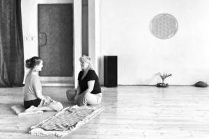 … z ukončeného dvojfázového tréninku meditace v pohybu DANCEmandala Facilitator Training Level 1 & 2 (400h) a ženského posvátného tance SheDance Teacher Training (100h) s Areeradh K-Tri Siddha. https://www.dancemandala.com/