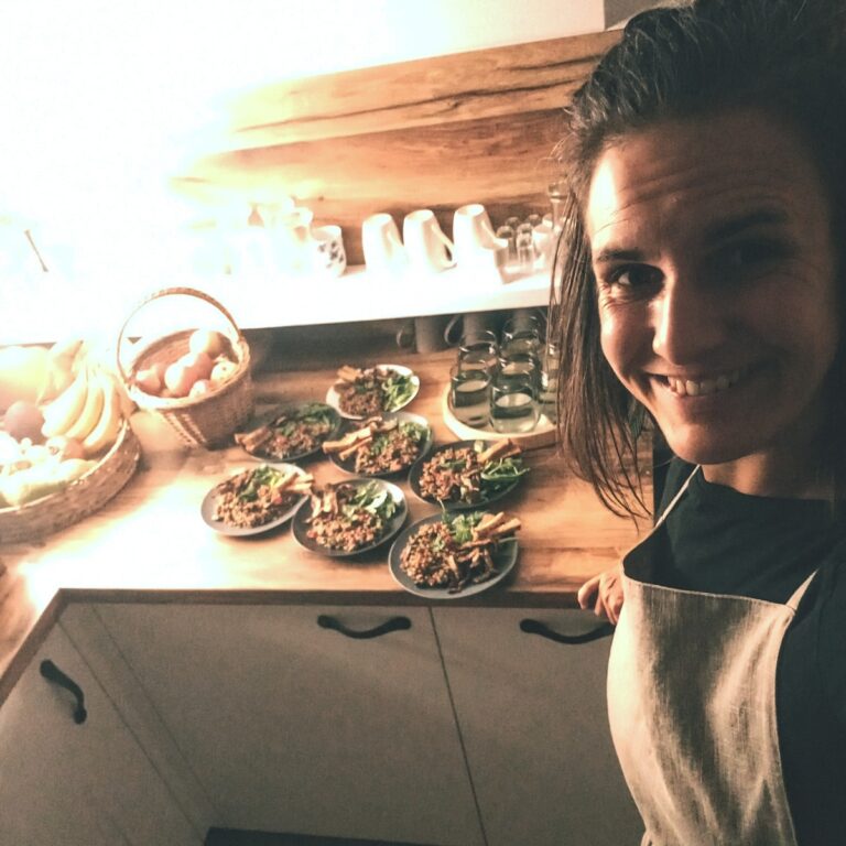 Jmenuji se Šárka Martínková. V gastronomii specializované na retreatové vaření (on-site) se pohybuji od roku 2015.  Během své roční Evropské dobrovolnické služby v Olde Vechte Foundation v Holandsku jsem potkala Zsuzsannu Pozsonyi, veganskou kuchařku, mistryni řemesla z Maďarska, a mohla se přímo s ní učit divům v kuchyni. Suzy mě naučila být s jídlem s láskou. Nebát se tvořit. Dávat jídlům jedinečný nádech osobitosti, zahrnout výživu pro všechny smysly a dbát na výběr surovin tak, aby podpořilo účastníky i tým na akci.