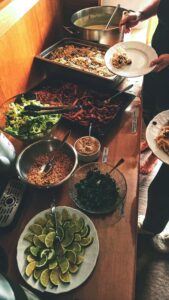 • nabízím formu bufetu “nalož si sám, měj v potaz celou skupinu”, coby prevenci plýtvání jídlem.